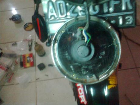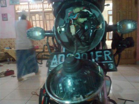 pas pulang jum’at lalu, habis pasang stang byson ke meggi ane,,,,babe ane bilang,,” LAMPU DEPAN MATI “….ane langsung syok berat ( lebay gaan ), malming buat KOPDAR gan,,,,masa gak pake lampu