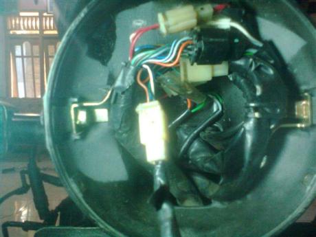 ane bongkar, check,,,,ukur tegangan pake multimeter, keluar 12 V, ane cek fittingnya,,NAHHHHHHH,,ini problemnya, ternyata fittingya MELELEH ( ane biasa touring malem2 ),,eh kebetulan pas dibawa babe koq mati,,.ya nasib,,,,,,