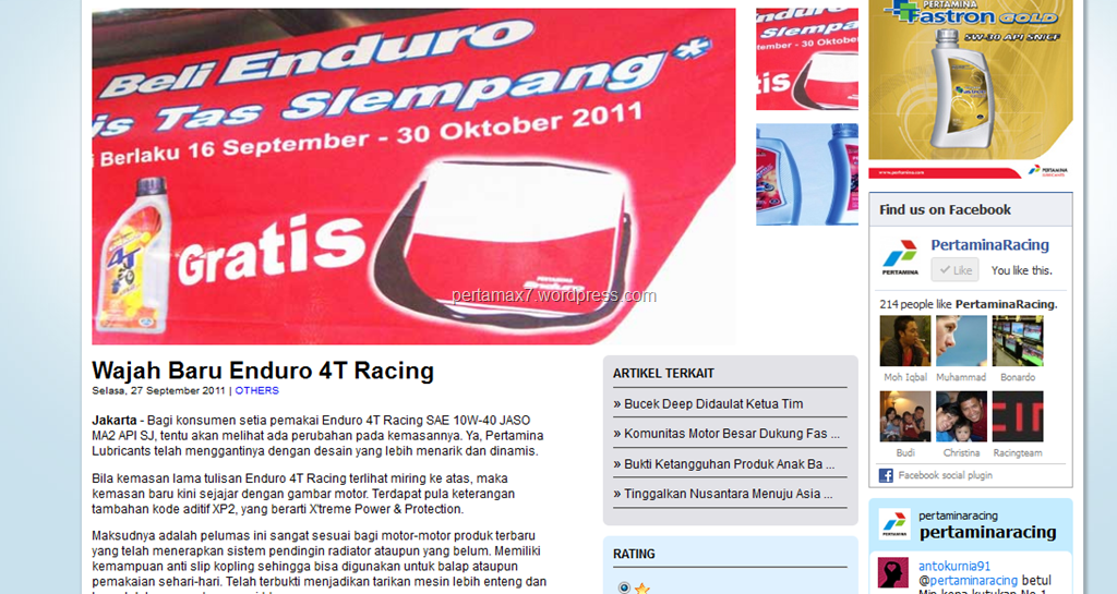 Posted by ipanase in mbengkel.Tags: enduro 4t racing, enduro 4t racing di honda megapro, google, oli, pertamina, review pemakaian enduro 4t racing