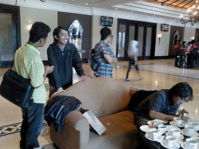 wah, ane duduk deket bang VARPUT, n beliau bawa netbook ( LUMAYAN< dapet pinjeman netbook plus ada wifi di seraton hotel )