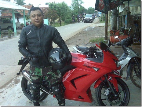 cerita aja yach,,sambil nyasar ke judul,… kemaren siang, ane mudik ke wonogiri seperti biasanya,,,karena indikator bensin megison dah menunjuk ke arah E plus merah,,,,ane pun mampir ke spbu buat ngisi pertamax plus premium aja cukup deh, beli Rp, 10.000 aja cukup deh ke wonogiri,,,sip sip sip, karena antri , ane pun segera maju, eh terdengar suara garang stereo khas moge yang familiar di kuping ndeso ane, yups, kawasaki ninja 4 T warna merah,,,brummmmmm, matiin mesin,,,,