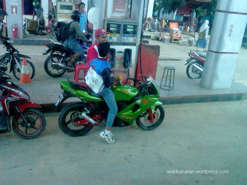 ( mau ambil gambar takut gan,,,ntar ane dihajar malah repot,,tampangnya sadis ),,,), tapi ada lucunya, pas beliau beli bensin eh malah suaranya kenceng tanpa dosa, PREMIUM PAK, 30 ribu, ( boncenger sama tukang spbu malah senyum plus ketawa, ewkwkwk ), dan si penunggang ninja jawab ( dah biasa pakai pertamax, njajal ( nyoba ) premium yang murah )……ane pun segera jalan aja deh sambil NAHAN ketawa akah bapak2 satu ini.,,wkwkwk, ra ndue isin ![]()