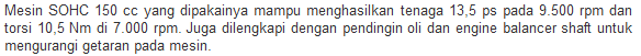 mesin 150 cc, keluar 8,5 KW =11,36 HP ???? koq di kalimat atas jadi 13,5 PS?? dapet tambahan tenaga dari mana nih??? aneh bin heran