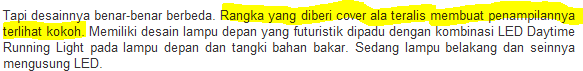 artikel yg ky begini kaga cocok dijadiin bahan pertimbangan buat beli motor. tulisannya menjatuhkan n fans boy banget.