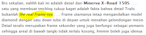 kynya ga ada yg nyebut2x framenya murni tralis loh.jadi dimana letak kebohongannya?