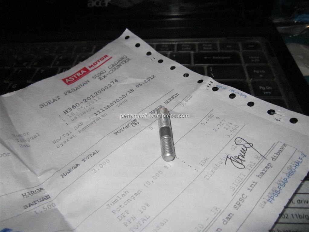 dan ane tanya bagian sparepartnya, ( sampe kenal ane gan, wong sering INDEN 👿 ), ane cari baut stud, dan setelah check ada