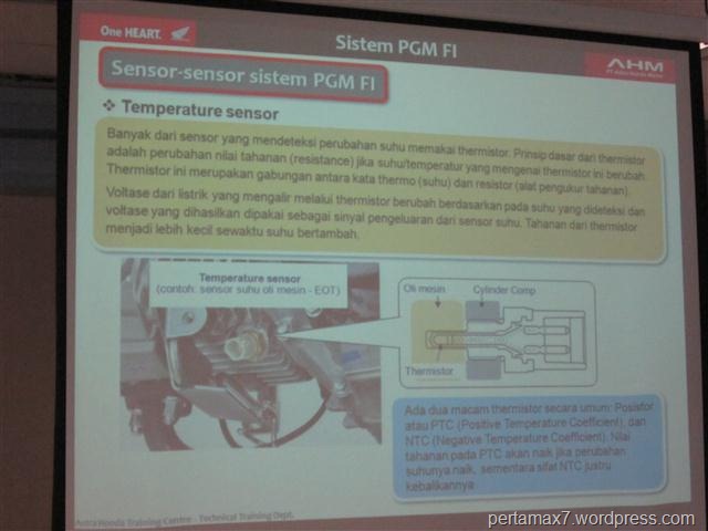 temperatir sensor digunakan agar sistem PGM-FI mudah dinyalakan baaik di waktu dingin ( pagi hari misal ), hingga saat mesin panas…..ceklik, grengggg,, … gampang