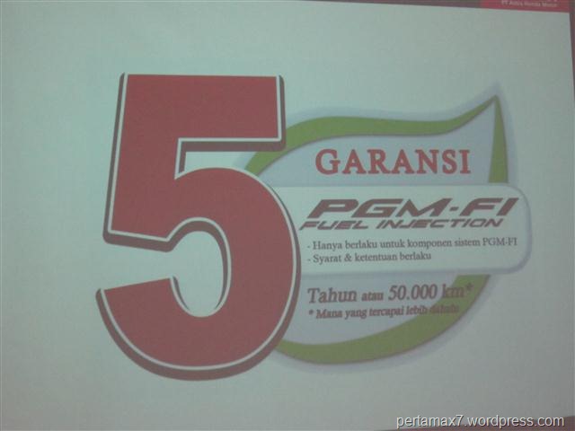 honda memberi garansi 5 tahun untuk sistem injeksi, 3 tahun mesin, 1 tahun rangka dan kelistrikan*