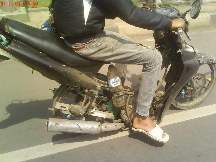 wkakakkaakka… tangki bensinnya pakai botol aqua