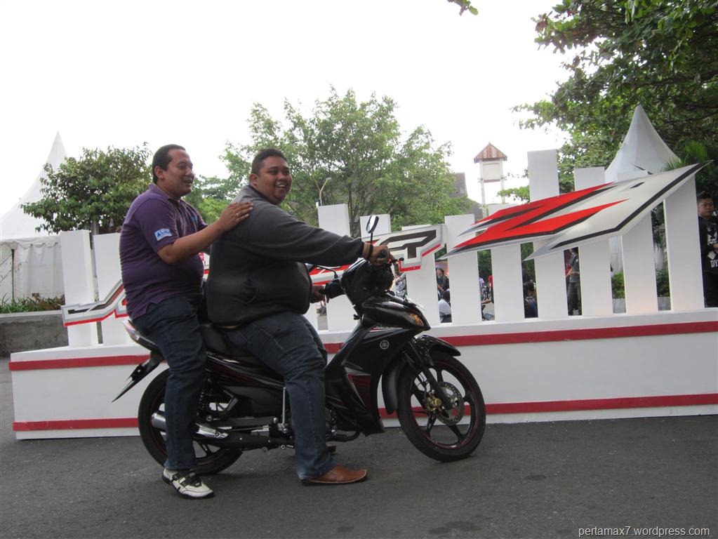 kalo aku jadi EO di event itu aku bikin peraturan batas maksimum berat badan yg boleh test ride, kasihan motornya