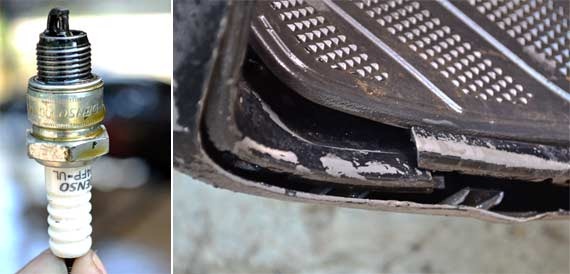 kondisi busi basah terendam oli(kiri). dek samping motor matik bisa pecah(kanan)