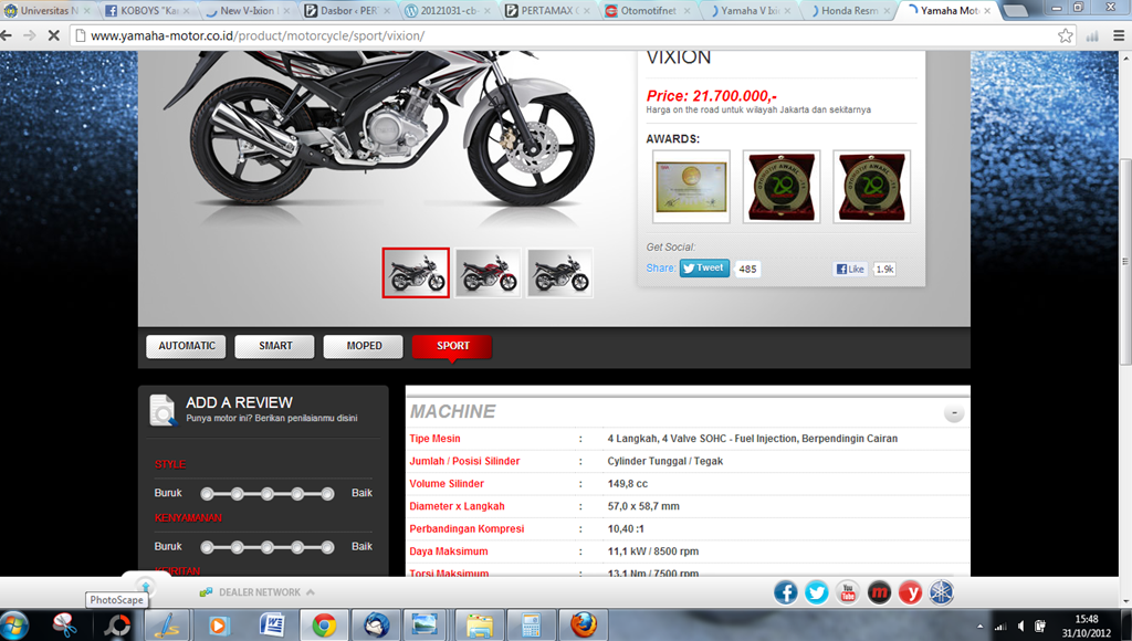 […] harga Rp. 22,6 jutaan, yamaha vixion menawarkan mesin SOHC 4 KLEP 5 speed yang mampu memuntahkan POWER on the CRANK sebesar 16,59 PS, velg lebar dan cakram belakang, serta body baru, mampukah yamaha new vixion meneruskan perjuangan […]