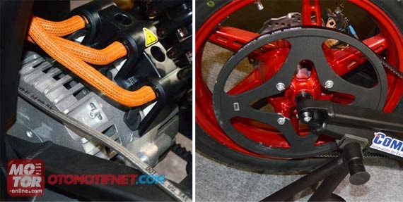 menggunanan final drive yang di tarik oleh toothed belt pasti makin senyap aja nih motor listrik, aman nggak ya? 😀