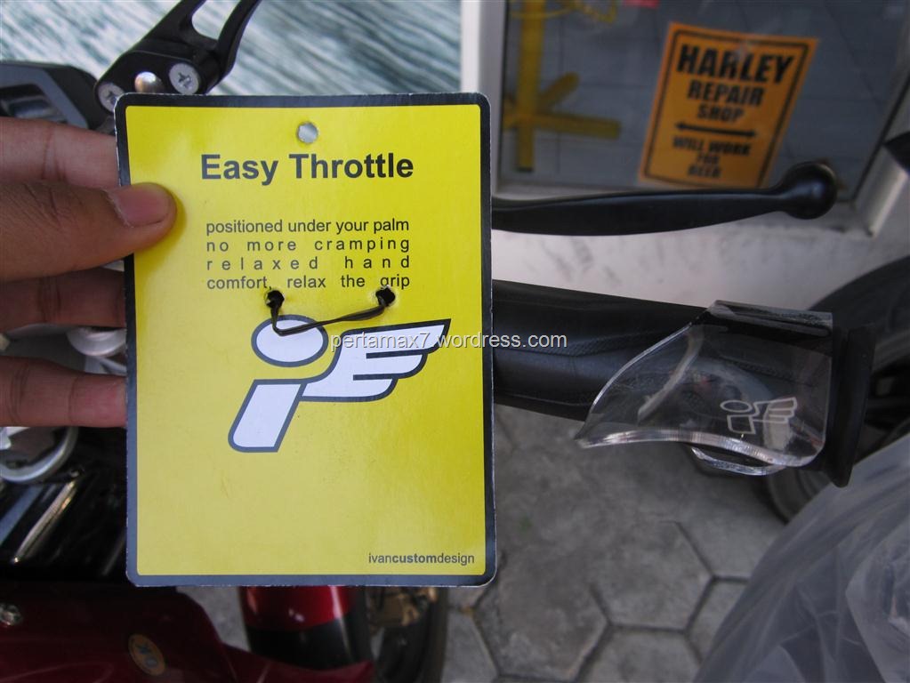saat perjalanan jauh dengan gas di panteng, penggunaan easy grip ini menjadi sangat beguna, mengurangi kelelahan lengan dalam  membejek gas
