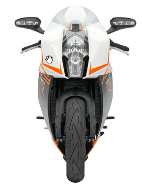 The twin plug ignition system on the latest RC8 R fires the two differently sized spark plugs in each cylinder head independently of each other in such a way that more efficient combustion and a smoother, optimally controlled combustion sequence are achieved at all times. The result: even more and even better controlled power, lower fuel consumption, and less emissions.