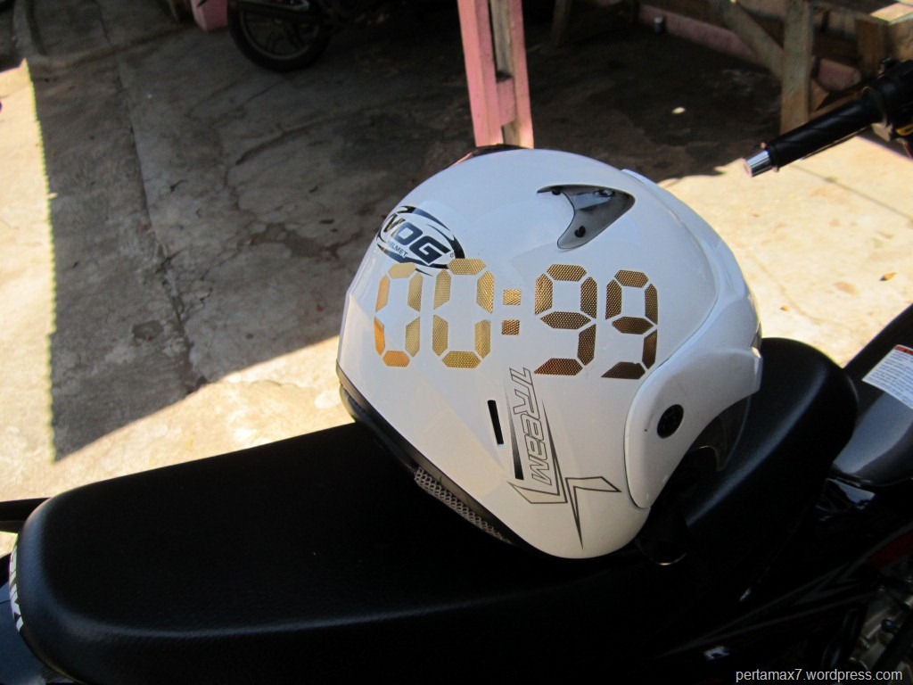 haduh.. helm ane jga ink ada stiker jam digitalnya juga 12:96