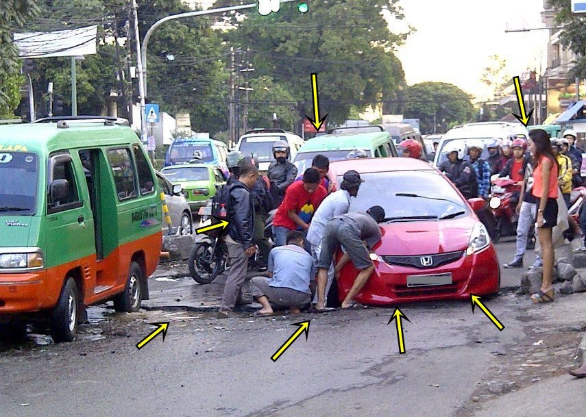honda JAZZ vs jalan berlubang, ya yangkut gan :D mobil pemirsa ada yang pernah mengalami? amit-amit 2 Desember 2012
