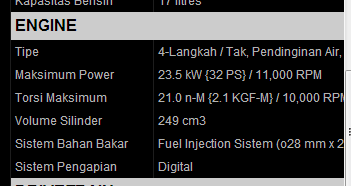 lhoa koq cuma 23,71 HP? katanya 32 PS kayak spesifisikasi klaim pabrikan kawasaki ninja 250 FI