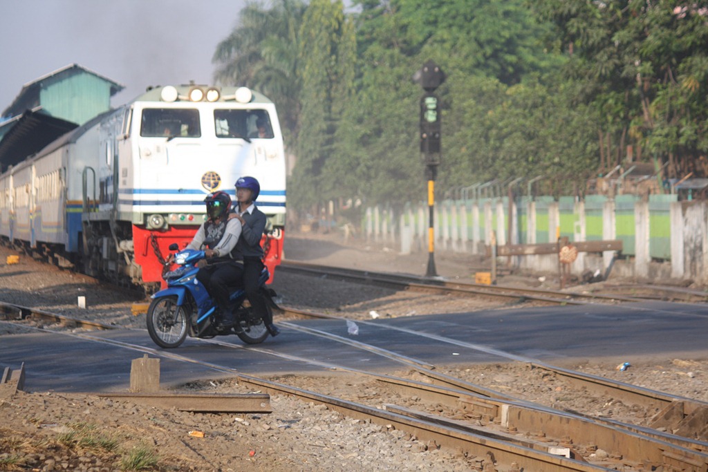 sudah pada tahu resiko melintasi pintu palang kereta api , tapi ya tetep banyak yang nekat