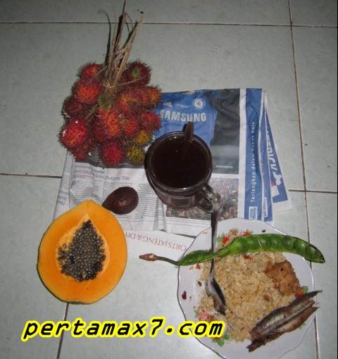 gila juga lu pan.. makan nasi goreng lauknya rambutan, salk, pepaya n pete dimakan sama kulitnya.. gw ga nyangkaa broo.. trus kuahnya pake kopi apa teh tuh, trus hidangan penutupnya makan koran…. hahahaha mantaaaaabbbzzz, pantesan agak eror ni orang, hahahaha/ bcanda brooo…