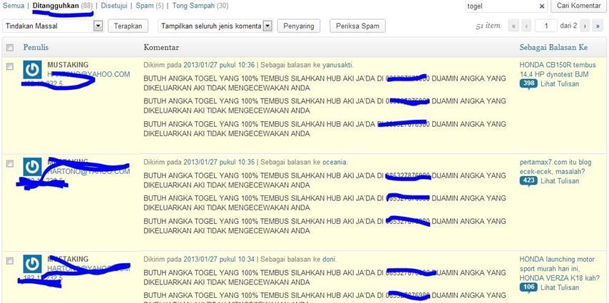 dilema saat ngeblog, diserang SPAMMER TOGEL 3 Februari 2013