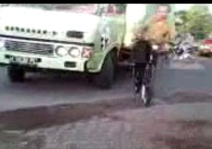 Wah itu bapak2 yg lagi ngindari truk jg alay. Make ban cacing