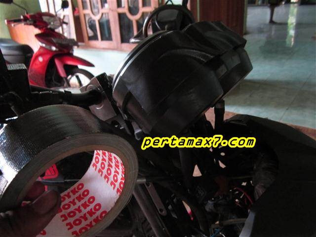 setelah selese, motor aneh ini di perban eh di lakban speedometernya, kan pecah gan