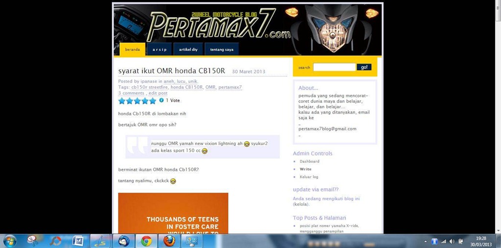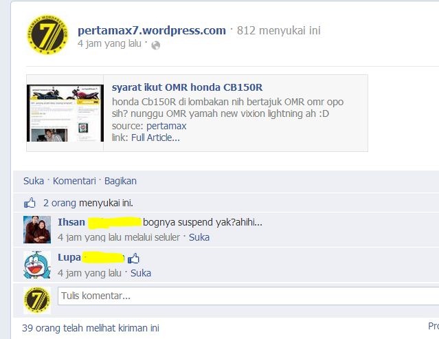 ceritanya begini, tadi malam ane publish berita OMR honda Cb150R , lah selese ane ketik ( gambar nyusul khas pertamax7 :D  ane mau cari pertamax lah malah blognya ngeblank 😀 ini kenopo jal