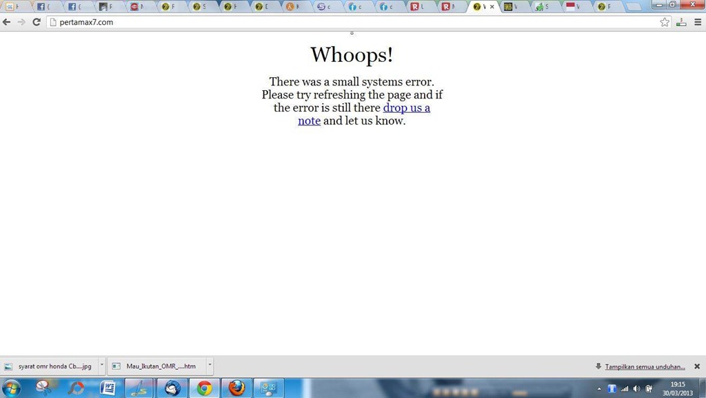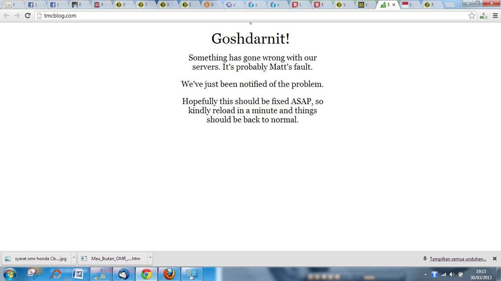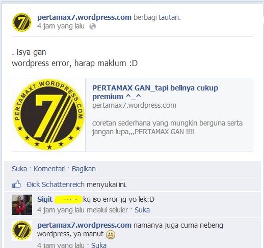 wordpress sempat error sejenak, pertamax7.com dikira blog di suspen 31 Maret 2013