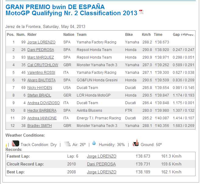 lihat motogp.com panel kanan, lho udah lekas aka mulai tow Qualifikasinya