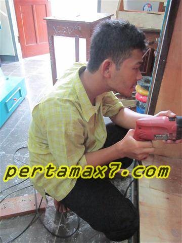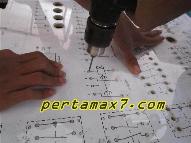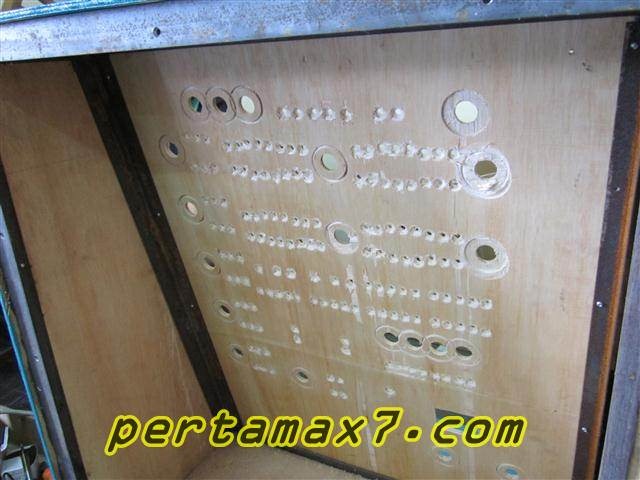 setelah berlubang semua, masih ada lagi, karena tebalnya papan yang dgunakan, harus ditipiskan, bor lagi