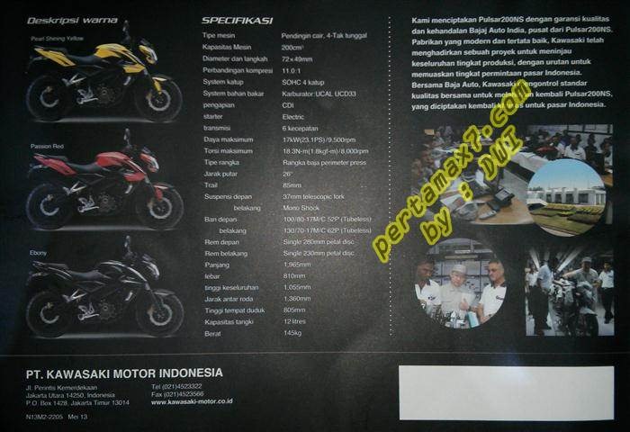 warna dan spesifikasi kawasaki bajaj pulsar 200ns 8 Juni 2013