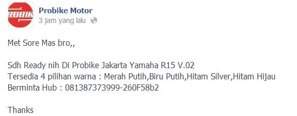 updated, ternyata bersumber dari probike yang dari dulu memang kondang seindonesia jualan motor import aka IU 😀