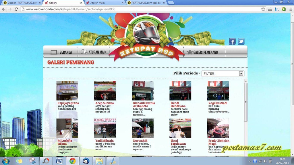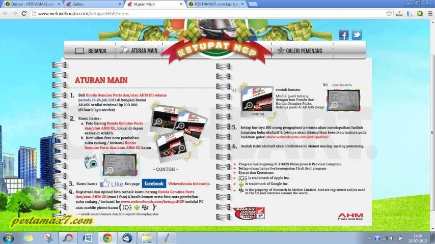 Pertamax7.com mendapat hadiah Helm Ekslusif honda dari kejutan HGP 27 Juli 2013