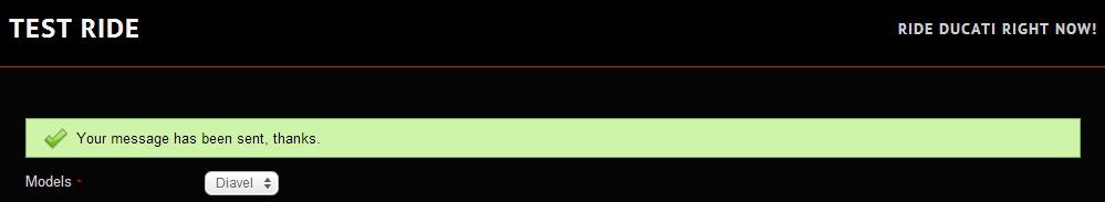 Thank you for your submission and interest in Ducati. Our representative will contact you shortly within 2 working days for further arrengement.