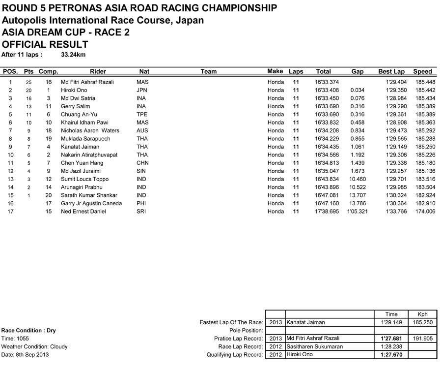 Asia Dream Cup Race 2 Top 5 Results: