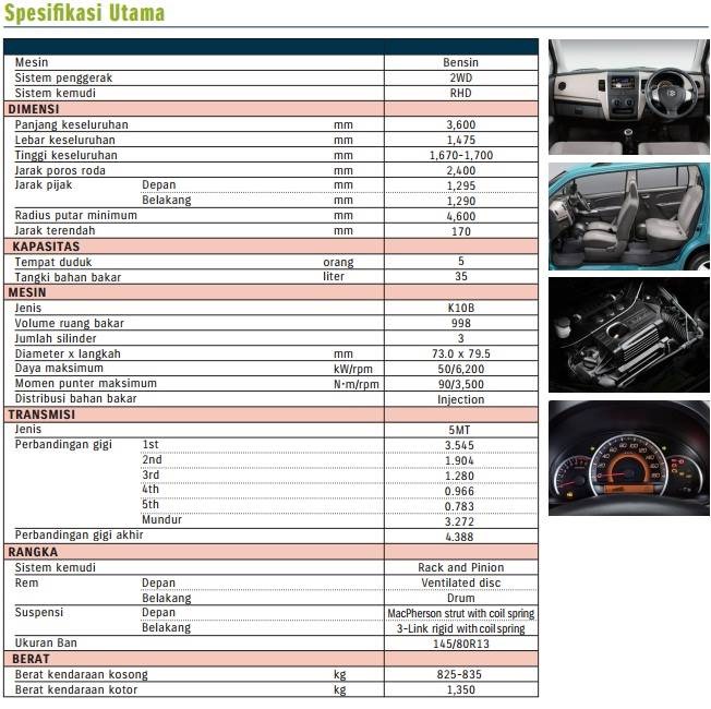 FWD dengan mesin 3 piston sejajajar 12 klep mampu membangkitkan daya maksimum on the crank sebesar 68 PS dan torque peak 90 NM… 5 speed