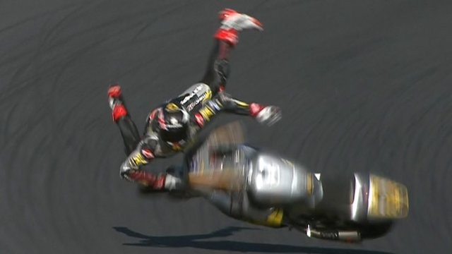 A mistake from Tito Rabat who runs off coming through Siberia, then tumbles in gravel. Rider ok.