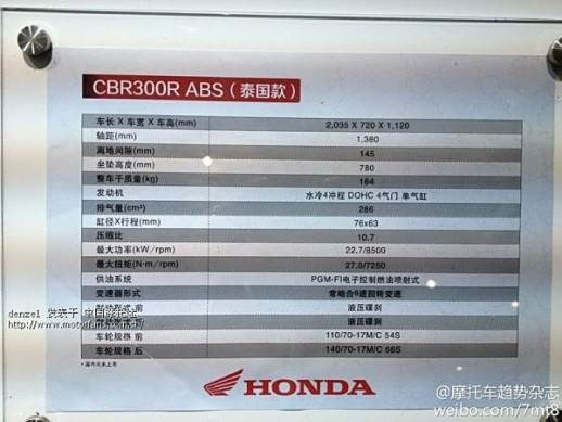 | CBR300R | 286 | 30,4 Hp @8500 Rpm | 27 Nm @7250 |