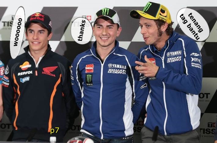 nah, dikarenakan marquez bisa jurdun minimal di posisi 4, memang kedua kubu baik orange maupun biru memanassss,, eh lek rossi pun siap membantu lek lorenzo ( sebisanya )… entah bantuan apa yang dimaksud 😀 ( bantuan dogfight kali yak 😀 )