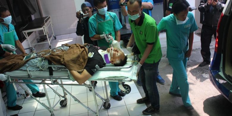 Saksi lain, Ny Nanging (50), mengungkapkan, saat terjatuh, kepala korban jatuh lebih dahulu dengan posisi tertelungkup. Oleh karena itu korban mengalami luka berat di bagian kepala. "Benturan di kepalanya yang membuat korban tak sadarkan diri," ujarnya.