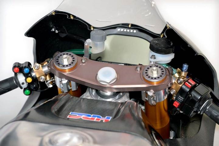The RCV1000R chassis is based on the current RC213V prototype bike, as is the engine – a 90º V4 producing over 235hp of power at 16,000rpm, utilising spring valves and a traditional gear box. The bike will be delivered with Öhlins suspension and Nissin brakes.