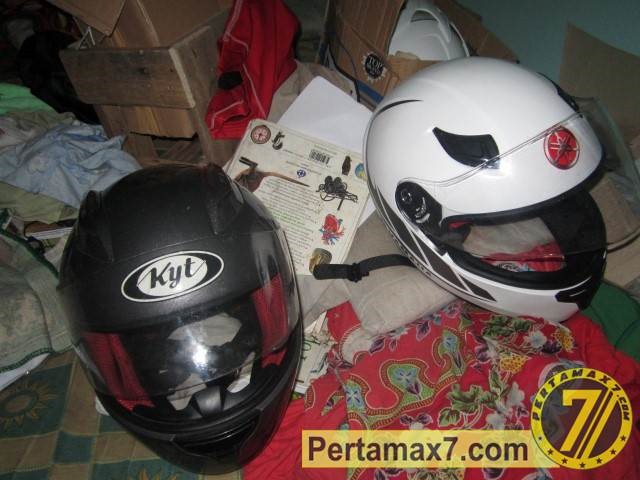 helm yg putih bawaan beli motor yamaha tuh. punya ane warna hitam.