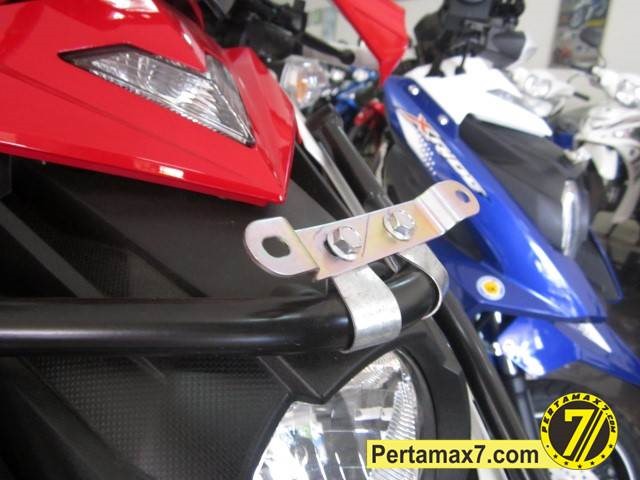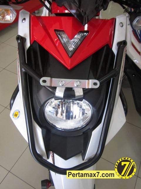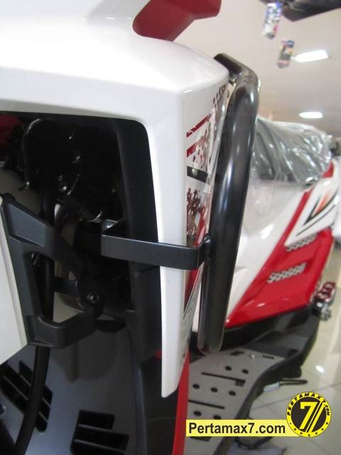 ada besi “plangkringan” yang sekaligus sebagai dudukan plat nomer yang tag lupa, di versi termahal ini ada tambahan VISOR