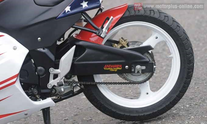 Setelah diganti menjadi ban gambot begini,kira-kira berani apa tidak balapan sama NVL ? Kan sudah imbang tuch spek kaki-kakinya,sama-sama gambot.