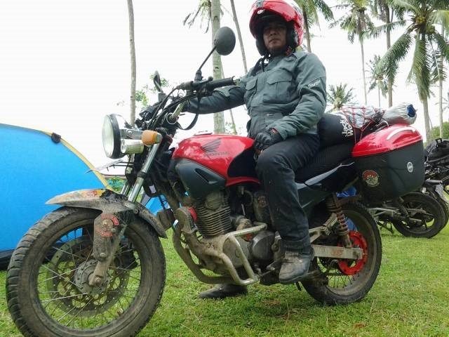 Andri Rismanto yang akrab dipanggilan Ki Dauk, walau usianya terbilang sudah senja (55 tahun) namun semangatnya sebagai seorang petualang masih menggelora seperti anak muda. Ki Dauk Kakek asal Yogyakarta yang tinggal di Setu Bekasi ini masih mampu menempuh jarak 300km dengan kecepatan berkendara motor rata-rata 70km perjam. Perjalanan ke Ujung Kulon ditemani oleh Wibisono teman akrab semasa SMA, keduanya merupakan member dari HTML Depok, berangkat hari sabtu jam 12 siang dengan menghabiskan bensin hanya 120rb pulang pergi, dengan motor Honda Tiger Merah yang telah terpasang SINNOB Gear Merah, kian menambah garangnya motor penjelajah ini. Tiba dilokasi acara tepat jam 11 malam, total perjalanan 12 jam.