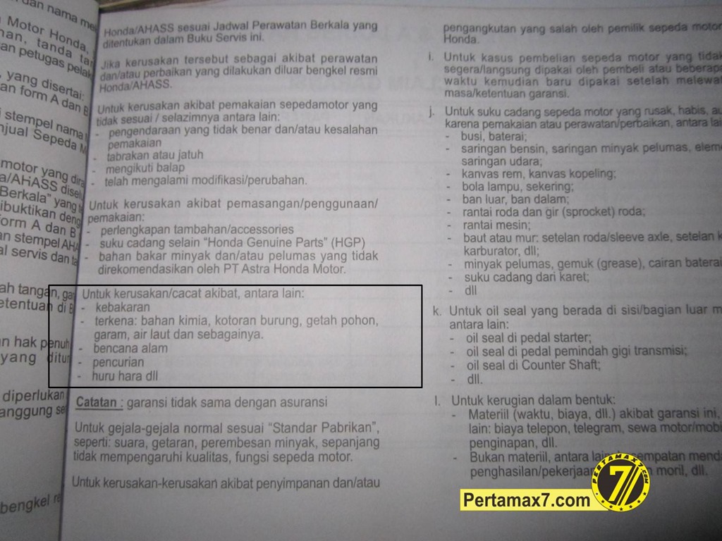 “kalau ada kerusakan akibat bencara ( banjir misalnya ) baik itu tidak sengaja maupun sengaja, maka garansi akan hangus………..”