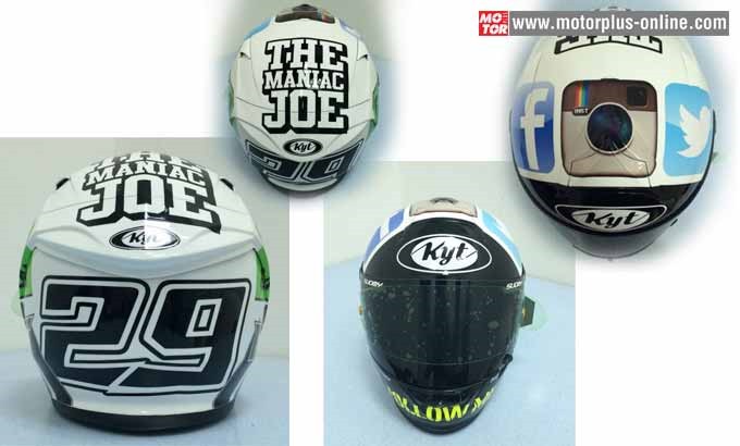 namun, cuma helm Suomy miilik andrea iannone yang ditempelin logo KYT ( logo depan dan logo samping new model ), sedangkan punya dovisioso tidak ditemplein KYT meski sama ake suomy…