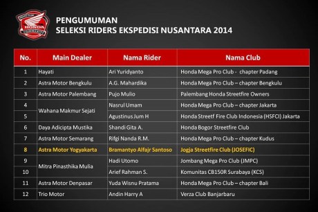 Bramantyo JOSEFIC wakil dari Astra Motor Yogyakarta Untuk Ekspedisi Nusantara 2014 pakai Honda New Megapro FI ? » daftar-rider-ekpesdisi-nusantara-2014.jpg