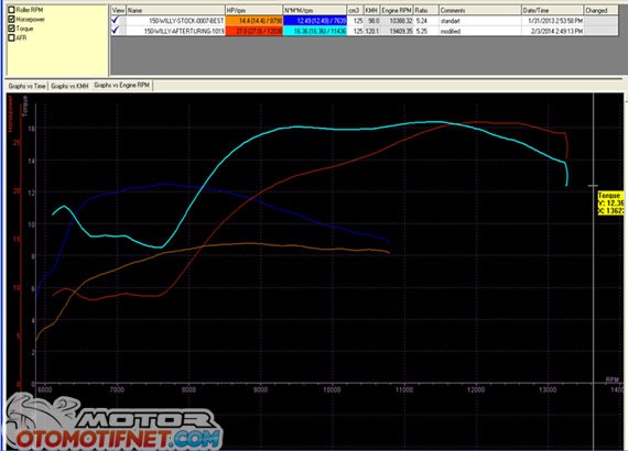 R15 upgrade 60% tanpa bore up bisa tembus 19,5 hp dan itu di dyno di mesin DynoJet 250i yang terkenal “pelit” dalam memberikan hasilnya